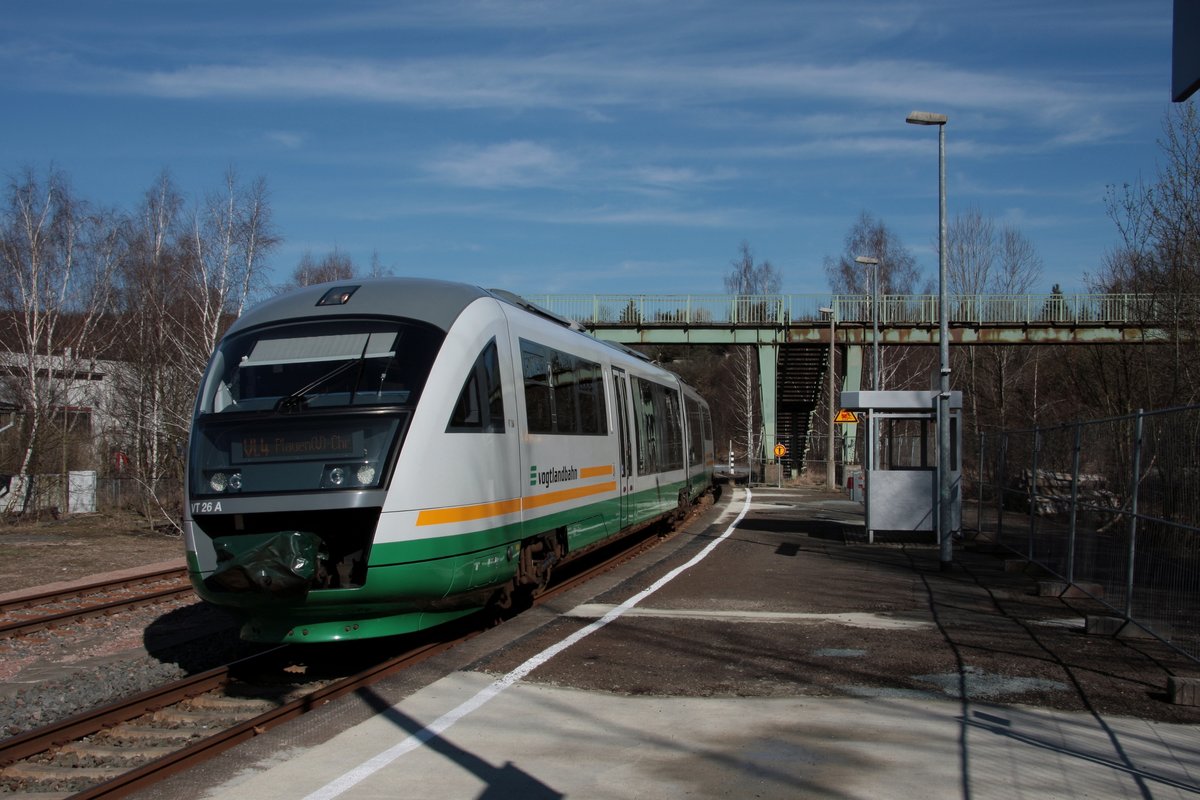Der noch mit Vogtlandbahn beschriftete VT26 hat am 20.03.2014 als 81165 Plauen-Crieschwitz erreicht und endete dort wegen Bauarbeiten, extra dafür wurde der 2005 stillgelegte Hp wieder in Betrieb genommen.