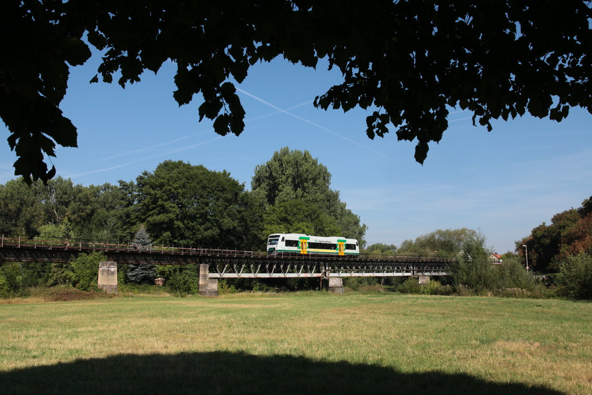 Die Brücke über die Weiße Elster und 2 Straßen dürfte einer der Gründe für die Stillegung der eh. sächs. Strecke zw. Wünschendorf Nord und dem Abzw. Gera-Debschwitz sein. Am 04.09.2002 wird diese von VT03+11+13 als VBG81197 befahren.