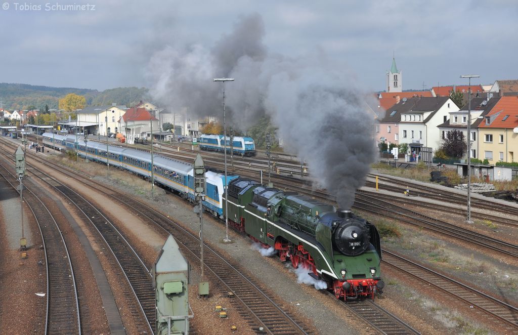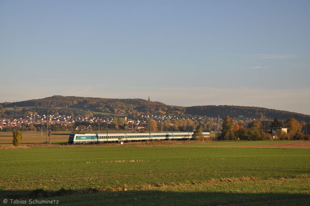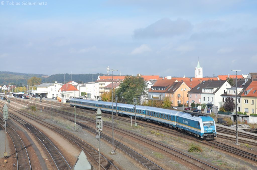 18 201 + 223 062 mit ALX84111 am 14.10.2012 bei der Ausfahrt aus Schwandorf. Die 18 201 wurde zum Bahntag in Regensburg überführt. Tobias Schuminetz, Hirschau