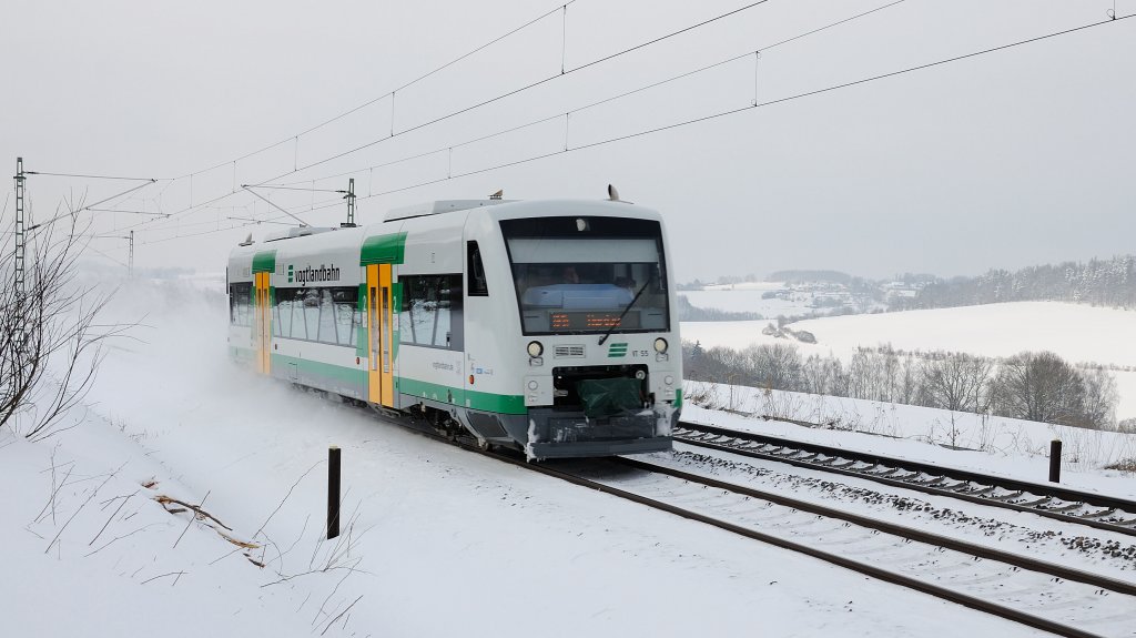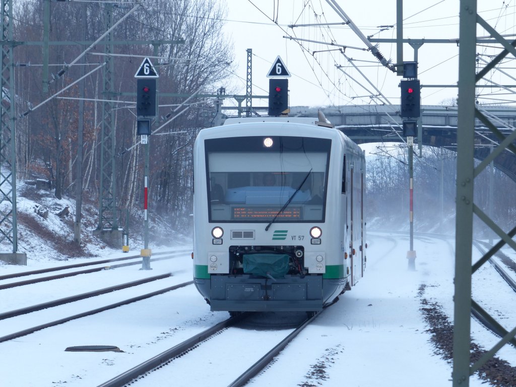 Regiosprinter VT 43 der Vogtlandbahn hat die Höhen des Vogtlandes erklommen.