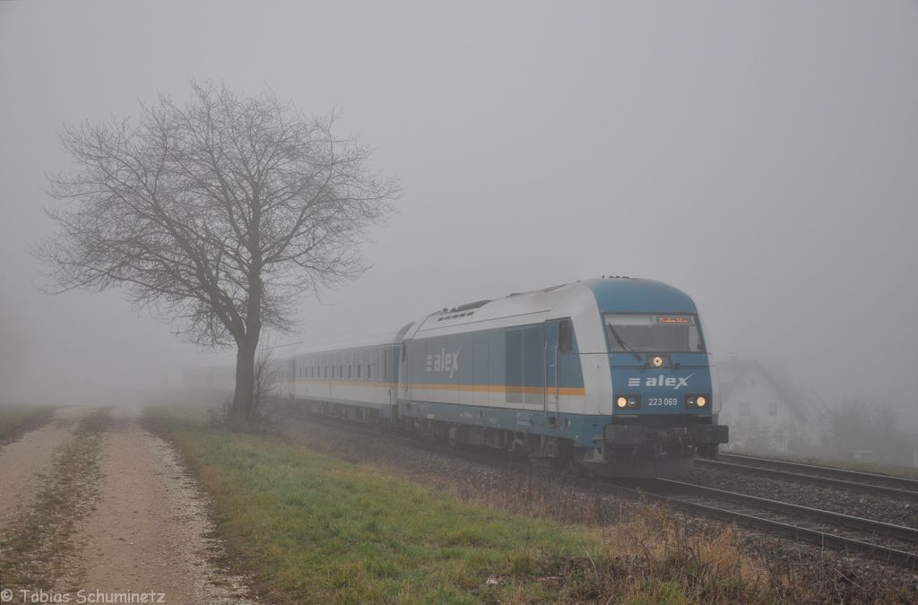 223 069 mit ALX353 am 13.11.2012 bei Sulzbach-Rosenberg. Ausserplanmäßig waren anstatt der CD-Wagen die ALEX-Wagen im 353. Tobias Schuminetz, Hirschau