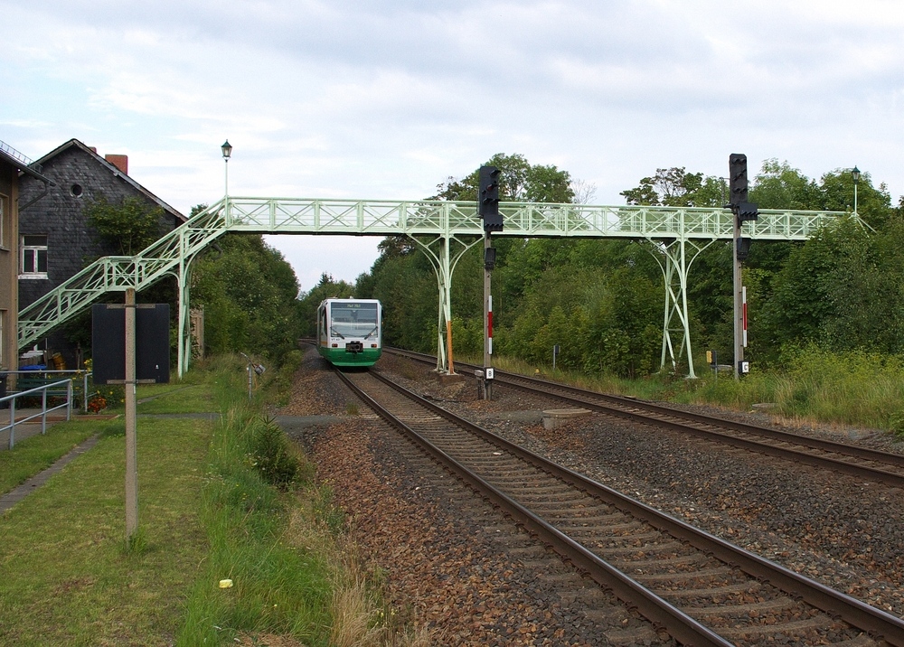 Wenigstens die Triebwagen der Vogtlandbahn halten zwischen Hof und Reichenbach noch an jeder Station der KBS 530 bzw. 545.