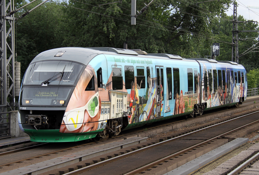Zum 1. Oktober wurde der Vogtlandexpress nun zum dritten Mal innerhalb weniger Jahre eingestellt. Zukünftig wird nur noch ein Bus auf der Strecke Reichenbach - Chemnitz - Berlin zum Einsatz kommen. Am 24.03.2012 fuhr noch der VT04 in die Hauptstadt, hier fährt der Zug durch Zeithain. Christopher Pätz