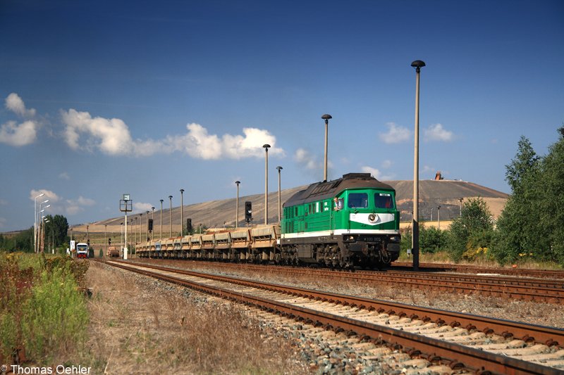 232 405 (V300 002) der Wismut mit ÜG 66234 vor Raitzhain (23.07.2007)