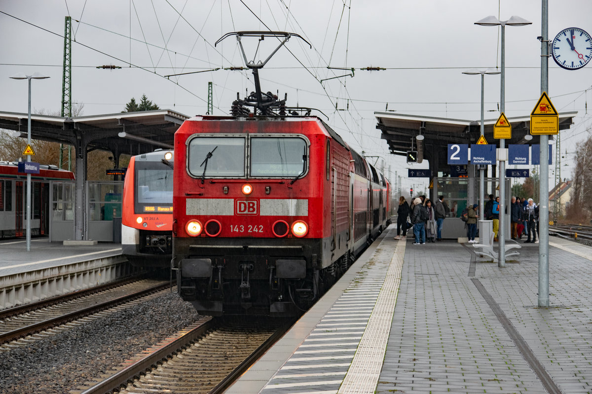 Nachdem über etliche Jahre Doppelstockwagen verschiedenster Bauarten auf der S7 zum Einsatz kamen, folgten Anfang April 2018 Bombardier Talent 2. Doch deren Zeit währte nicht lange, denn seit Anfang Dezember sind hier erneut unterschiedliche Doppelstock-Züge mit Loks der Baureihe 143 unterwegs.