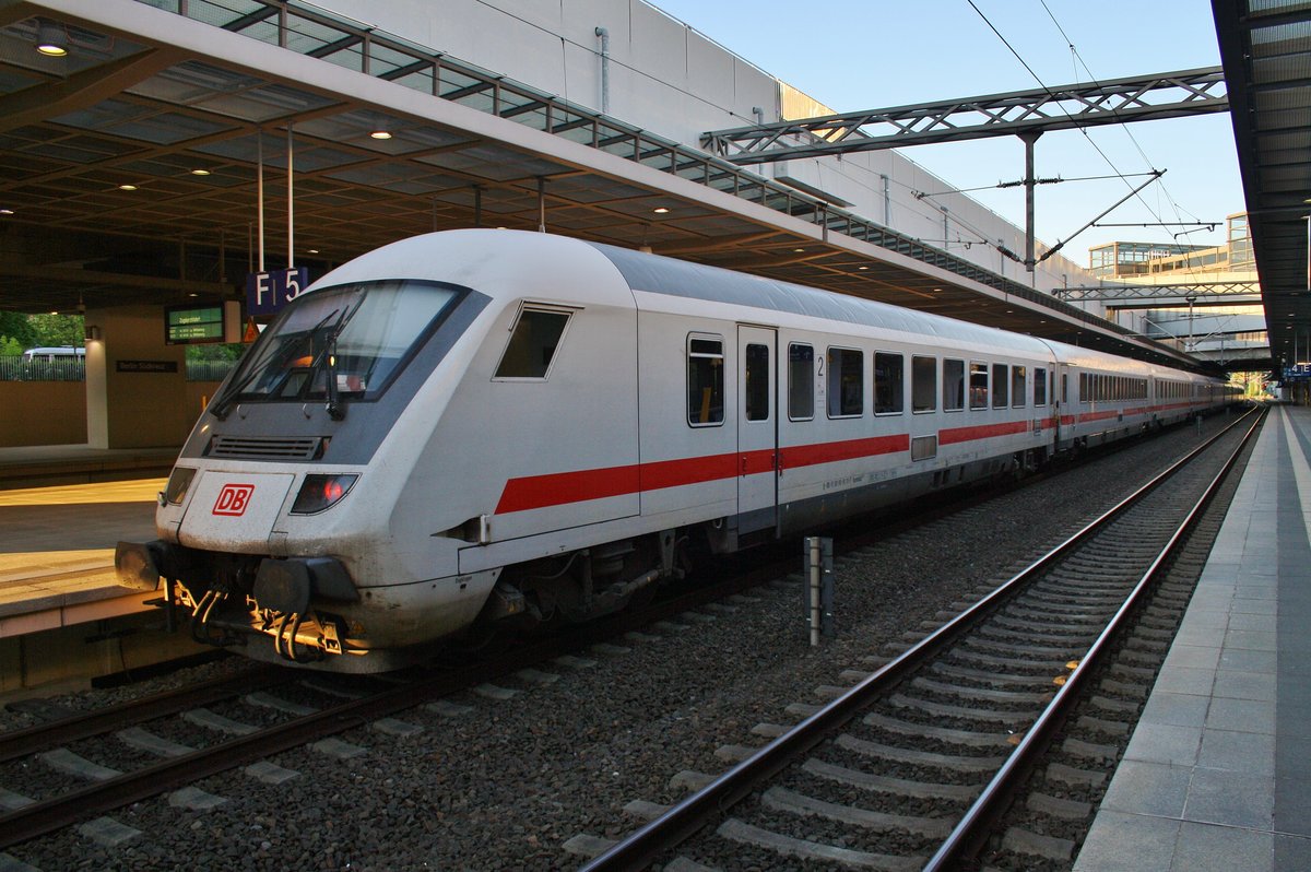 IC2300 von München Hauptbahnhof nach Warnemünde ist am 20.5.2017 als Leerzug auf dem Rückweg ins BW Rostock zur Abstellung, soeben wird der Rostocker Hauptbahnhof durchfahren. Zuglok war 120 114-4. Alexander