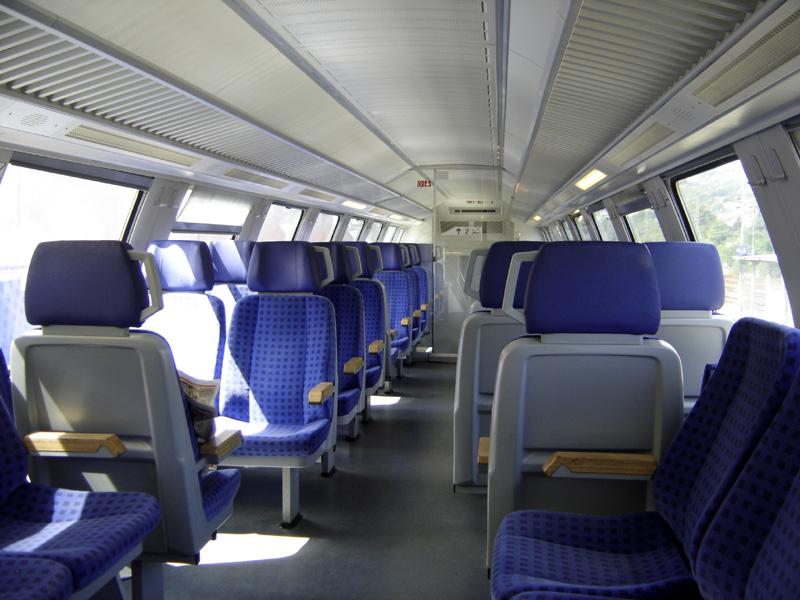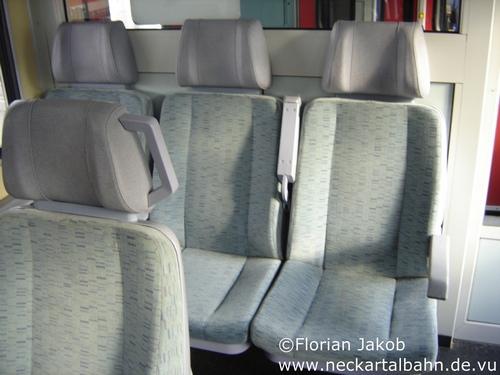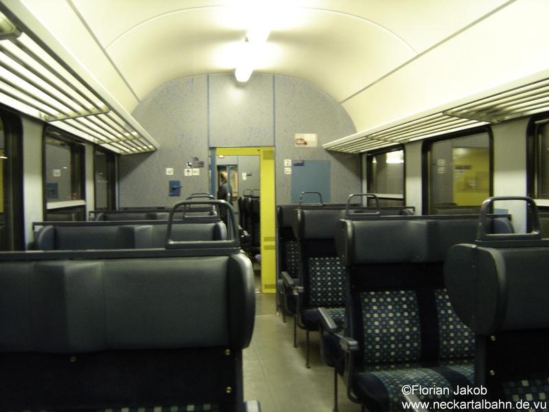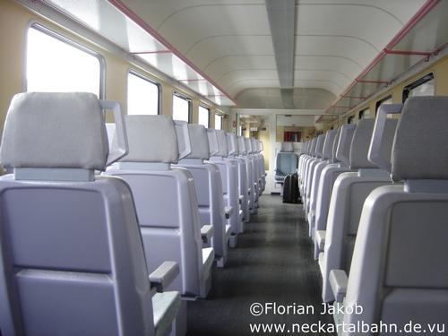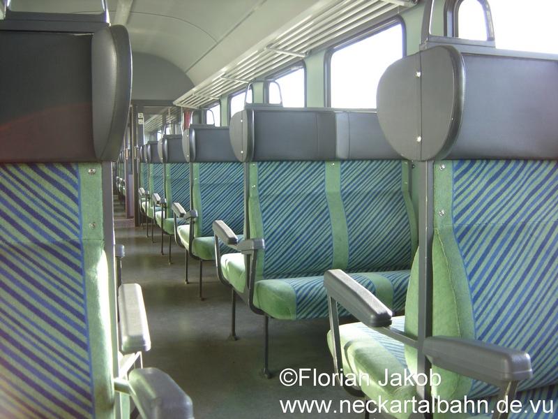 Hier sieht man den Innenraum eines modernisierten Flachwagens sie sind jetzt fast so gut ausgestattet wie ein Doppelstockzug der 3.Gattung. Nur die Klimaanlage fehlt noch;-)(das ist aber bestimmt zu teuer) Sascha Götz