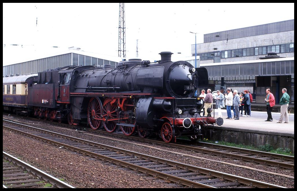 Am 20.9.2003 kam die ehemalige DDR Lok 228742 zu besonderen Ehren. Sie bespannte den alten Rheingold Zug und war damit im Ruhrgebiet, hier Halt im Bahnhof Wanne Eickel, unterwegs. Gerd Hahn