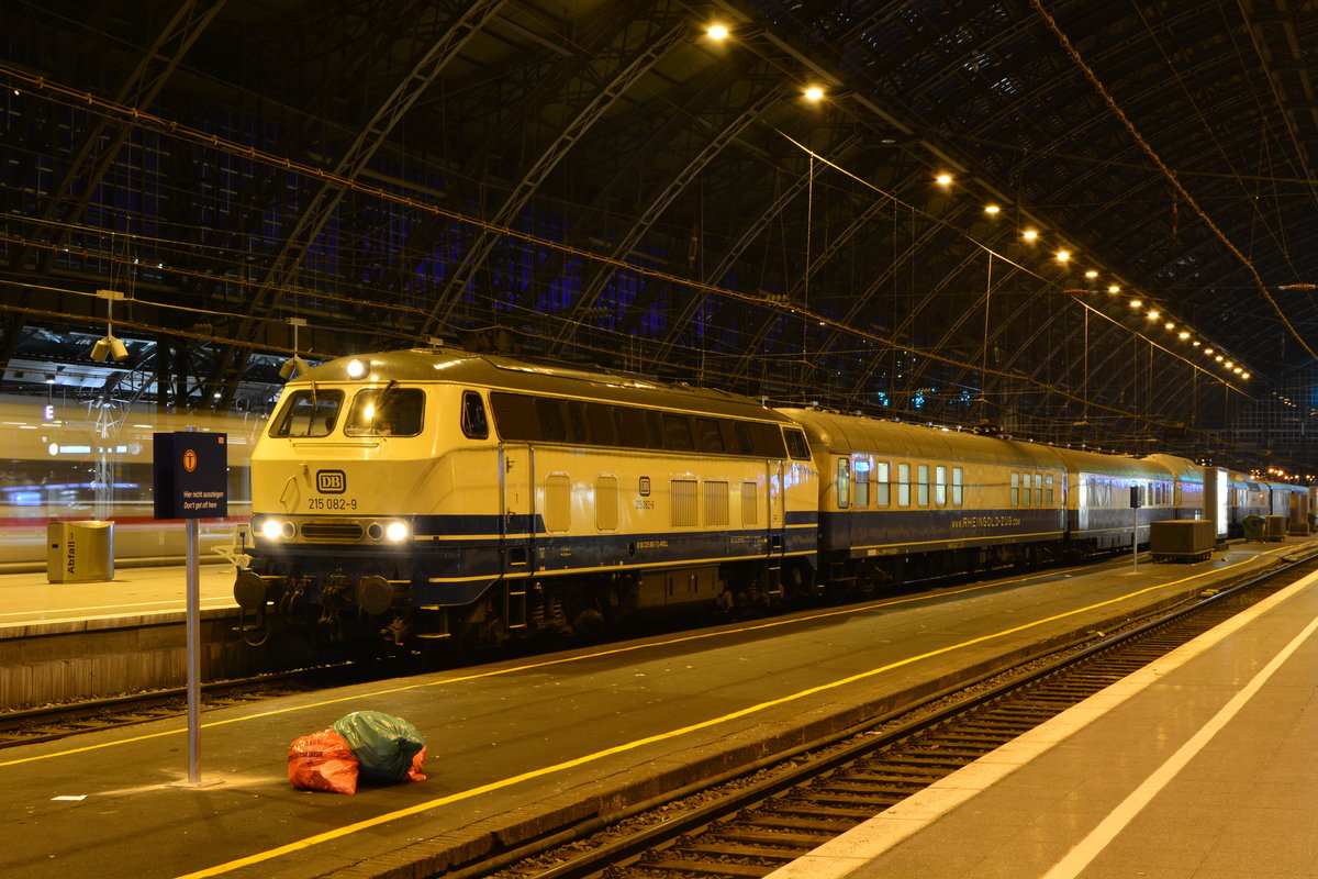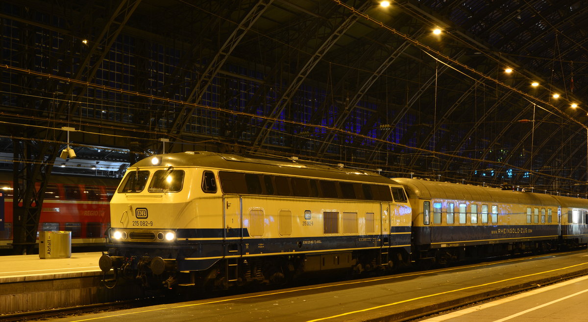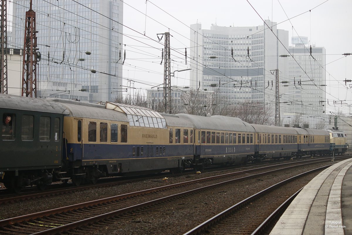 Fast die in Bundesbahn Zeiten. Am 18.2.17 zog die blau/beige 215 082-9 der Aggerbahn den Rheingold Sonderzug in den Kölner Hbf in Richtung Mönchengladbach.