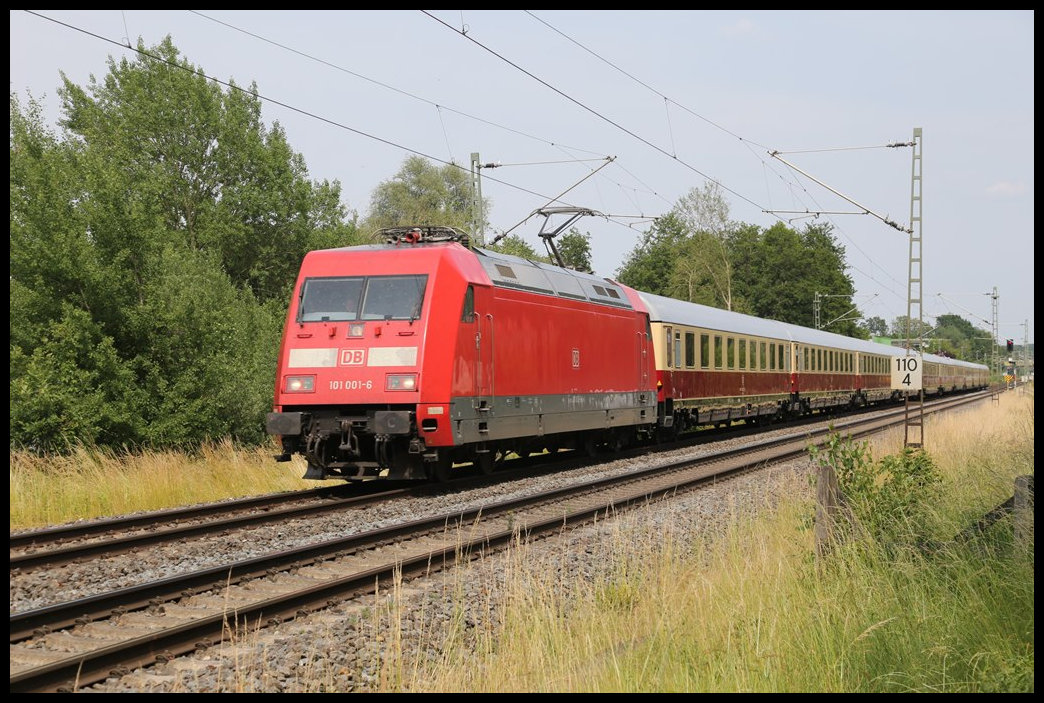 Am 18.06.2023 kehrte 101001 mit dem AKE Rheingold nach Koblenz zurück. Um 16.06 Uhr kam der Zug über die Rollbahn durch Hasbergen.