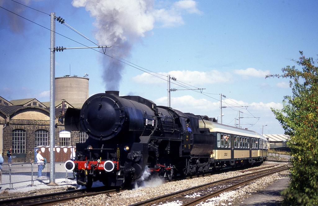 Anläßlich der Jubiläumsfeier am 7.9.1996 war die CFL Dampflok 5519 mit einem Rundfahrtzug unterwegs und verlässt hier gerade das Depot der Hauptstadt.