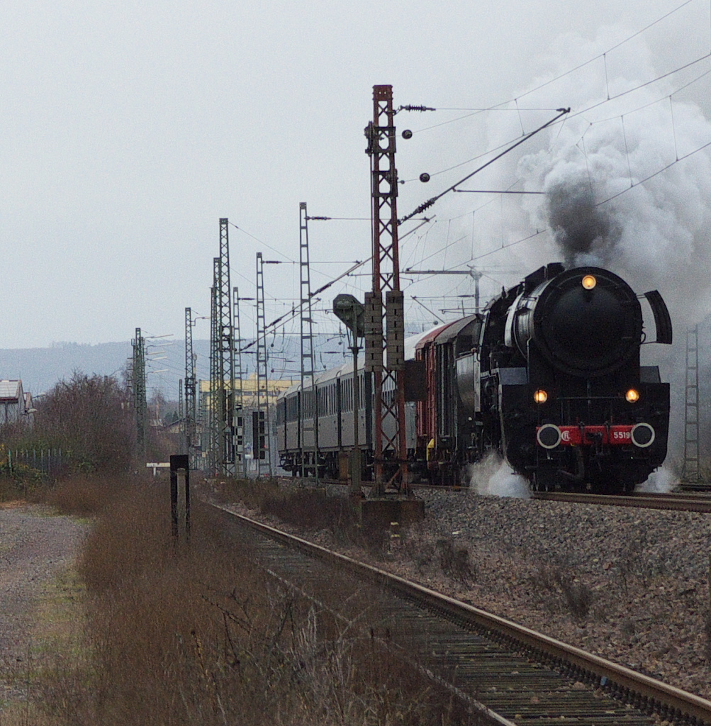 . Dampfsonderzug zum Saarbrücker Christkindlmarkt – Wir hatten beschlossen nicht an der Sonderfahrt mit der CFL Dampflok 5519 teilzunehmen, sondern unseren lieben Freunden Ivie und Erhard einen Besuch im Saarland abzustatten und zusammen mit ihnen Fotos vom Dampfzug zu machen. Entgegen der verheerenden Wetterprognose, liess der angekündigte Regen auf sich warten und so konnten wir den Zug, zwar ohne Sonne, aber immerhin trockenen Fußes ablichten.
