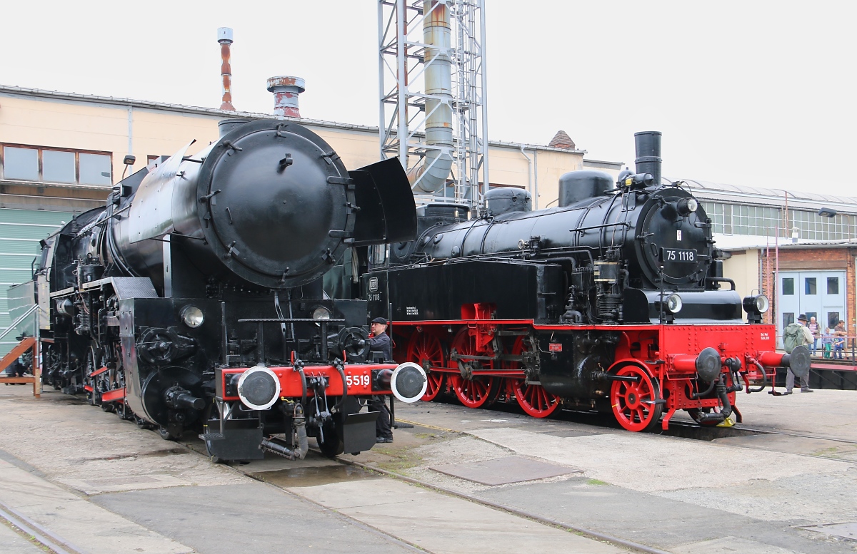 Zu Gast zum 100. Geburtstag des AW Meiningen und zu den XX. Meininger Dampfloktagen war auch die 5519 der CFL. Hier ist sie ausgestellt neben der 75 1118. Aufgenommen am 06.09.2014.