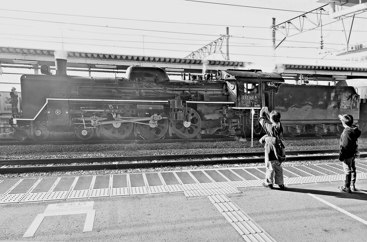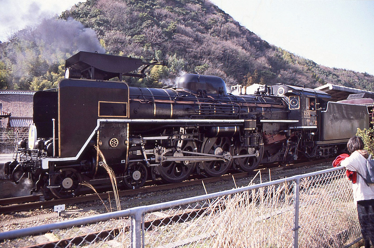 Japanische Dampflokomotiven C57. Lok C57 1 auf der Strecke zur Hochebene im Uebergang von Yamaguchi nach Masuda. Unterhalb Chômonkyô, 11.Oktober 2015 Peter Ackermann