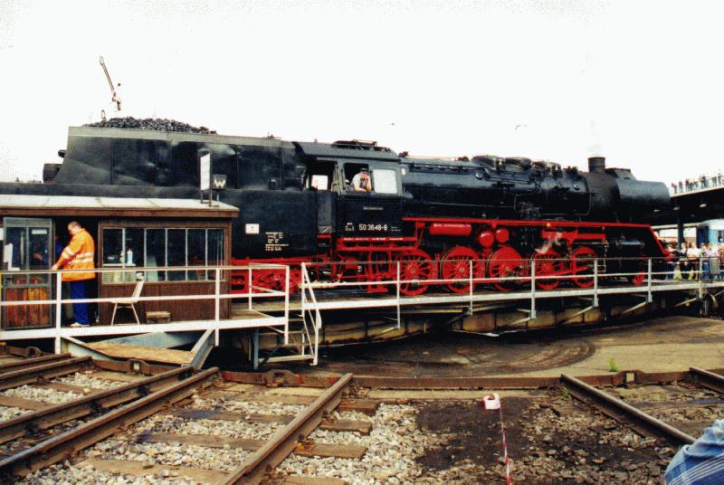 50 3648 auf der Drehscheibe vor Haus 1 im ehemaligen Bw Dresden-Altstadt