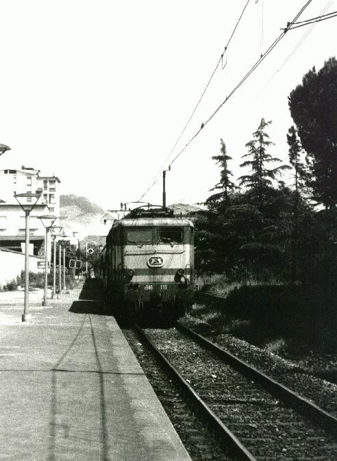 E 646 111 bei der Einfahrt in den Bahnhof Montecatini Centro im Sommer 1983.