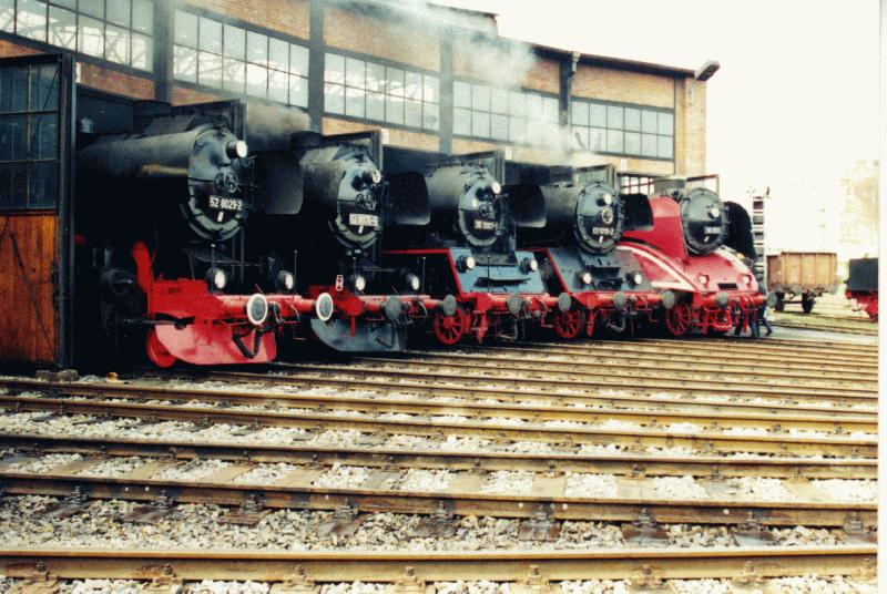 Lokparade vor Haus 1 im ehem. Bw Dresden-Altstadt: (v.l.) 52 8029; 52 8075; 35 1097; 03 1010; 18 201
