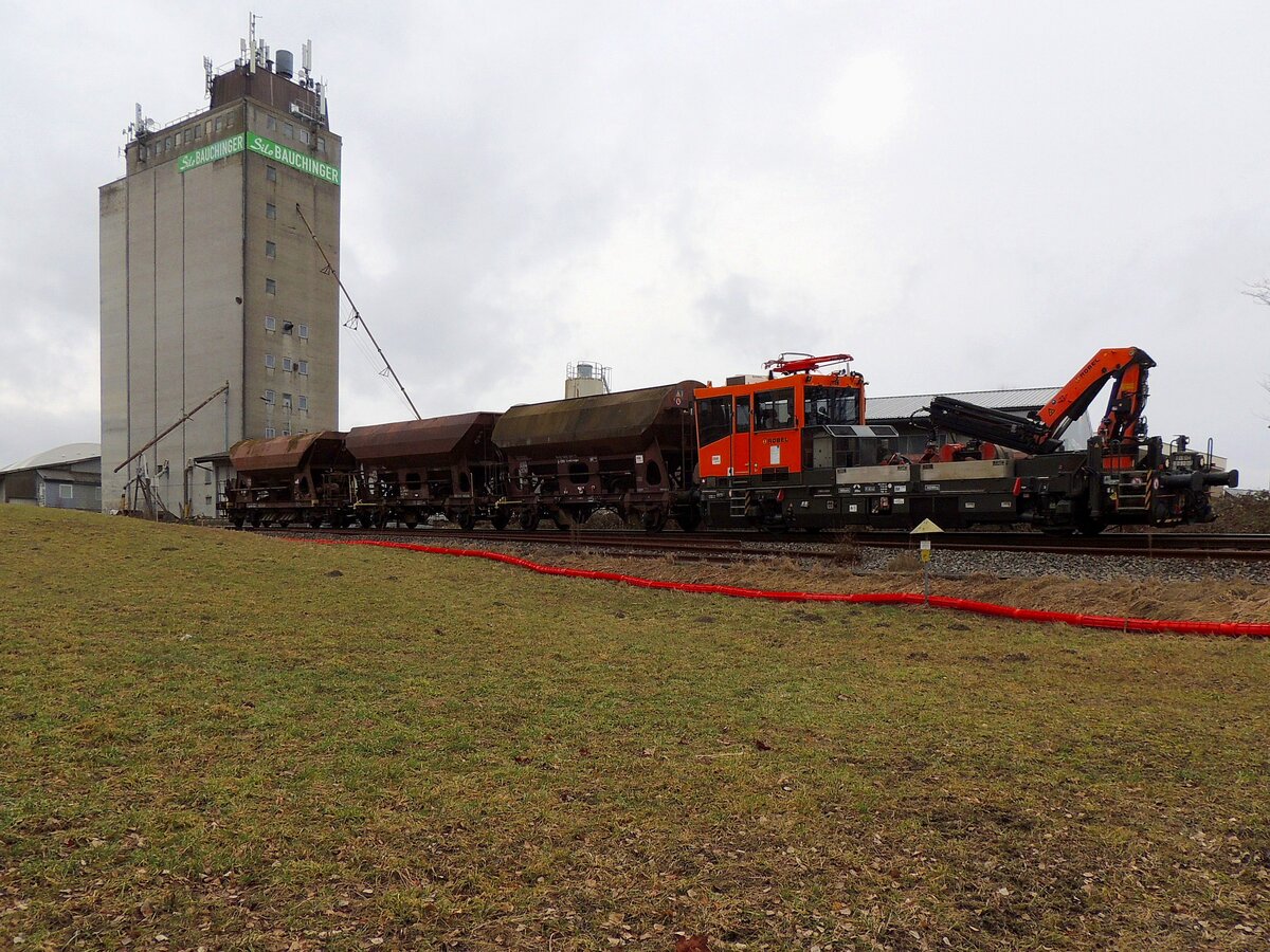 Rns-z 31 80 3991 090-7 ist mit Walzprofilen beladen, und wird aus dem in Umbau befindlichen Bhf.Ried, in Richtung Stahlhändler, gezogen; 260302 JohannJ