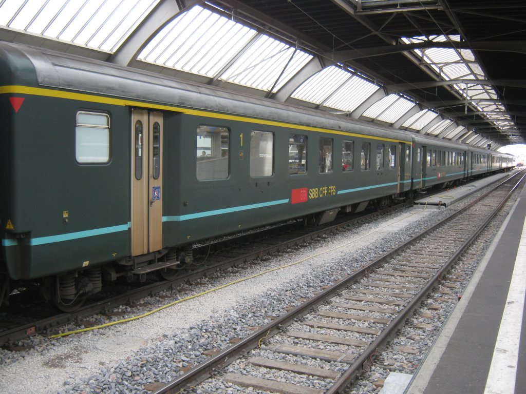 Der letzte A Komfortstreifen (50 85 18-33 636-9) mit 5 B Komfortstreifen im Ersatz EC 7 in Zürich HB, 17.09.2011.