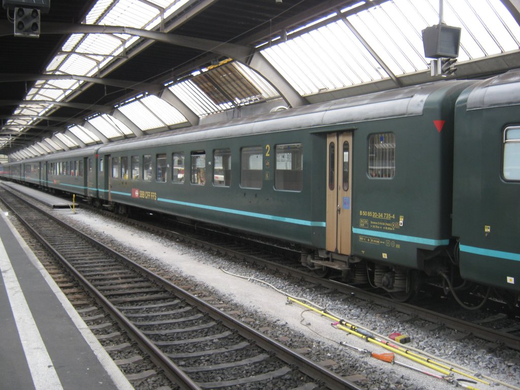 Früher Alltag, heute einmalig: 6 Komfortstreifen EWII (1 A und 5 B, zuvorderst 50 85 20-34 735-4) im Ersatz EC 7 in Zürich HB, 17.09.2011.