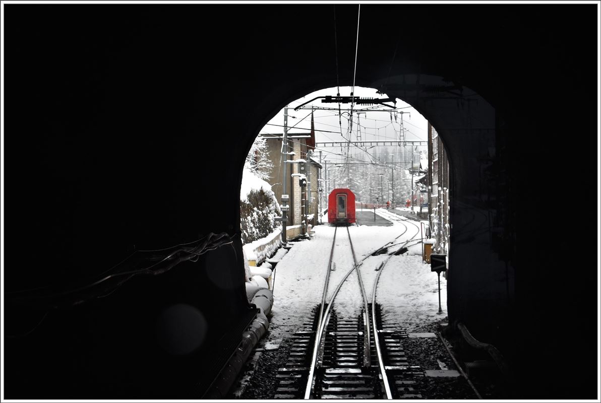 GEX903 aus dem Schlusswagen des RE1141 in Preda aufgenommen. Tunnelportal Albulatunnel I. (27.04.2017)