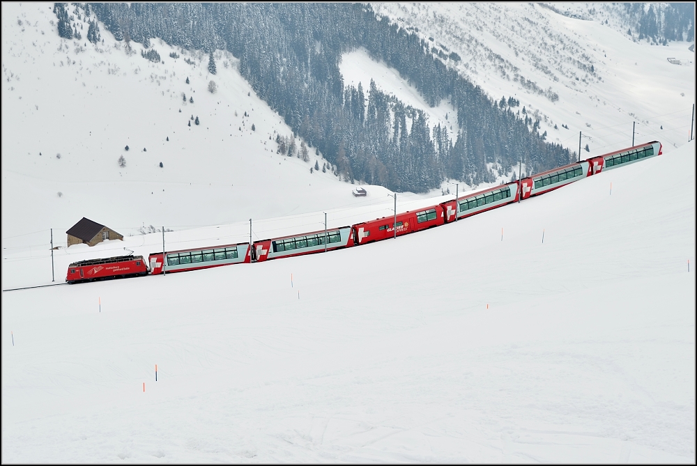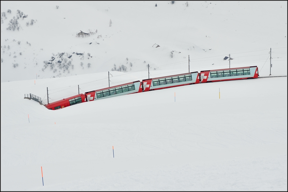 Heiteres Zügeversenken mit dem Glacier Express. Nätschen im März 2012.