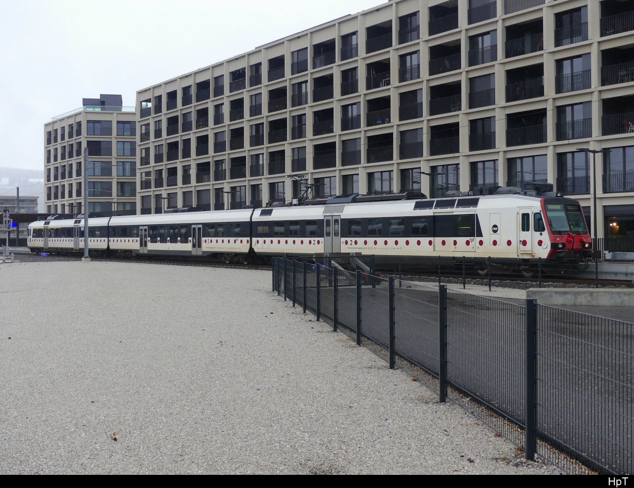 Im Bild der mit einem TPF Domino geführte R13 6038. Der Zug besteht aus dem RBDe 560 243 (RBDe 560 DO 94 85 7 560 243-8 CH-TPF), dem Zwischenwagen B NPZ DO 50 85 29-43 184-5 CH-TPF und dem Steuerwagen am Schluss mit der UIC Nummer Abt NPZ DO 50 85 39-43 841-8 CH-TPF.