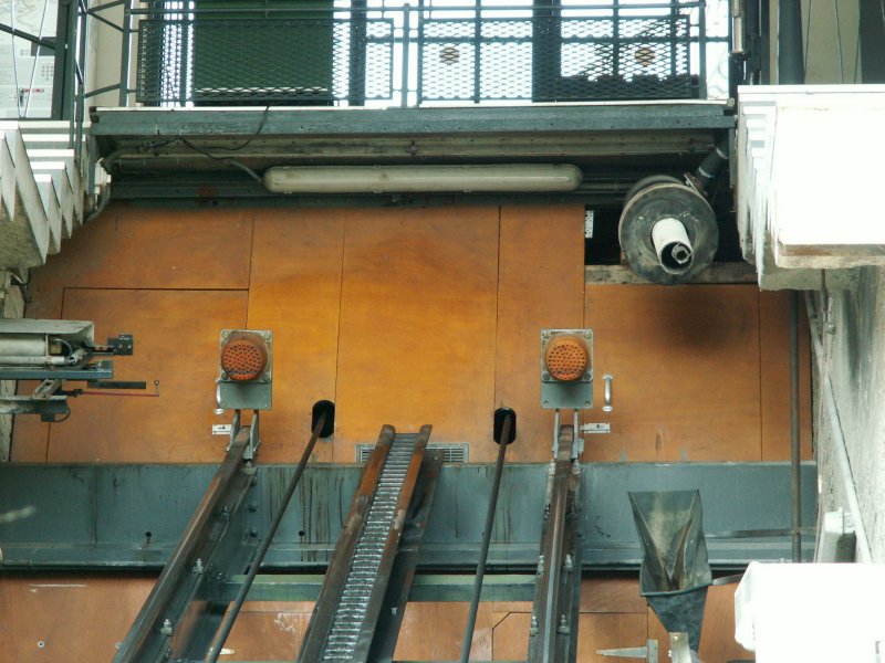 Funiculaire Fribourg,Neuveville-St.Pierre.Blick in die Talstation. Hier wird der Wassertank wieder autom.entleert.Fribourg 26.08.08