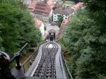 Funiculaire Fribourg."Le Funi" wie es auch genannt wird,auf Talfahrt.Fribourg 26.08.08