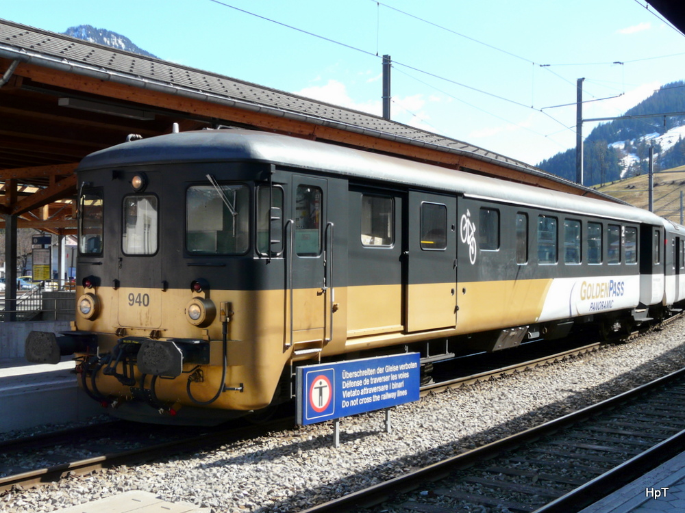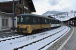 Ab Fahrplanwechsel Geschichte: Der Golden Pass Panoramic Pendel der BLS. BDt 50 63 82-33 940-2 bei Ausfahrt in Zweisimmen, 24.11.2013. Simon Bütikofer
