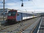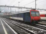 Ersatz RE 2953 mit dem führendem BDt 50 85 82-33 953-9, das hässliche Entlein. Dieser Ersatzpendel ist während dem Autosalon auf den RE Bern-Biel und Bern-Olten im Einsatz, da der planmässige Pendel als Extrazug an den Autosalon fährt. Der Zug bestand aus einem BDt, AB EWII,4 B EWI, 2 A EWI (alles NPZ Wagen) und der Re 4/4 II 11151, Lyss, 10.03.2012. Simon Bütikofer
