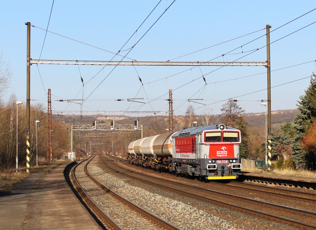 753 721-0 und 753 715-2 (Unipetrol) zu sehen mit einem Gaskesselzug am 17.07.22 in Ústí nad Labem-Střekov. Foto entstand von der Fußgängerbrücke! Alexander Hertel