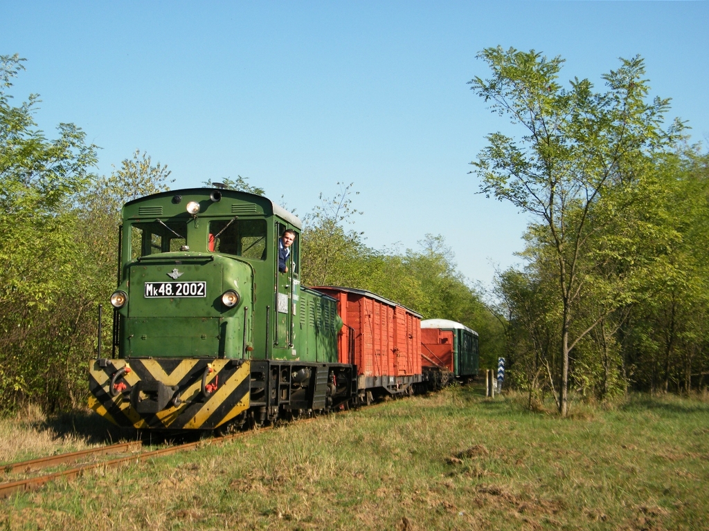 Mk48 2002 mit einem Foto-Sonderzug am Schmalspurbahn 'Zsuzsivasút', in der Nähe von Debrecen, am 06. 10. 2012.