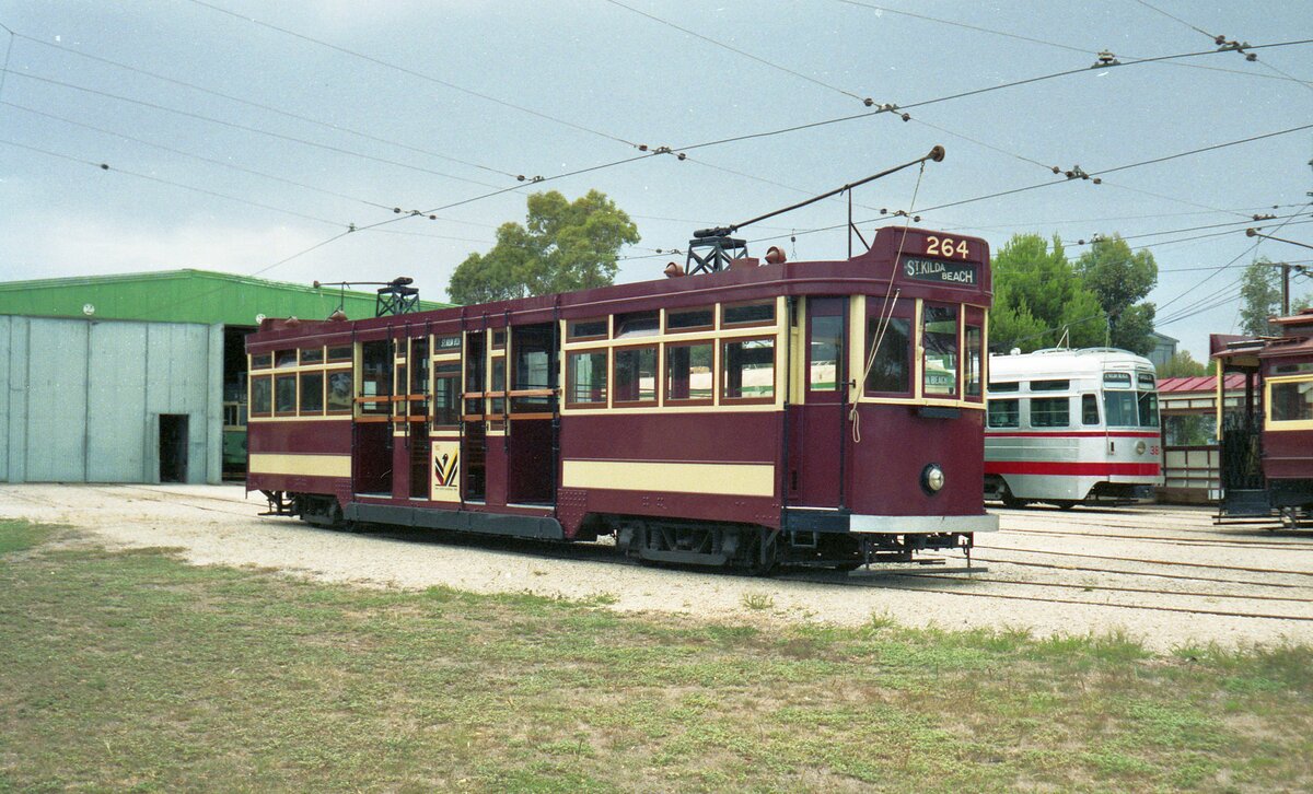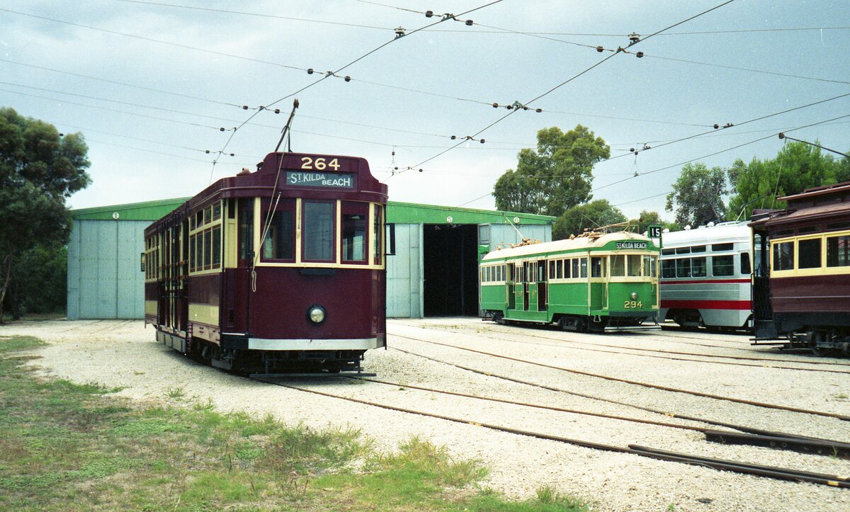 Tramway Museum St Kilda__Tw 264 [F1 car, Pengelly 1926] der MTT (Municipal Tramways Trust Adelaide) und Tw 381 [H1 car, 1952] der MTT.__07-01-1989 Klaus-Erich Lisk
