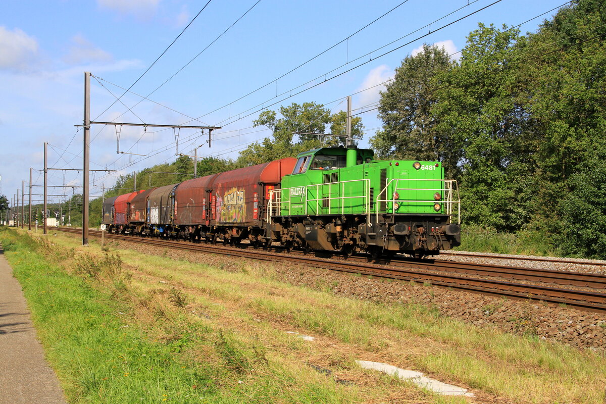 Belgiën Lok 6481 vom Railtraxx mit kürzem Stahlzug, in Testelt 31/8/2023