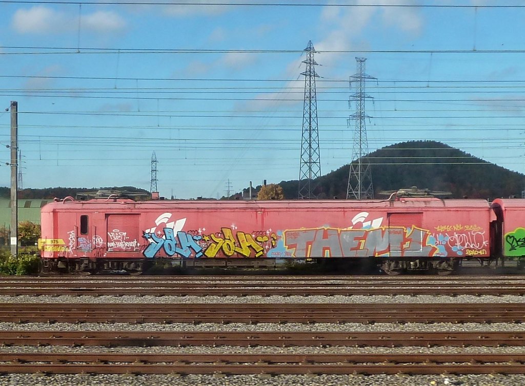 Diese mir unbekannter Triebwagen 975 (Postwagen?) stand in Bf Bressoux am 30.10 2010.