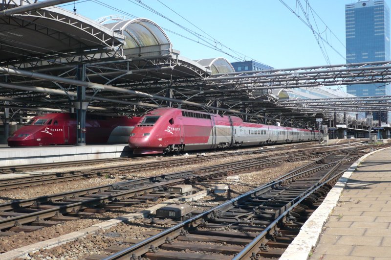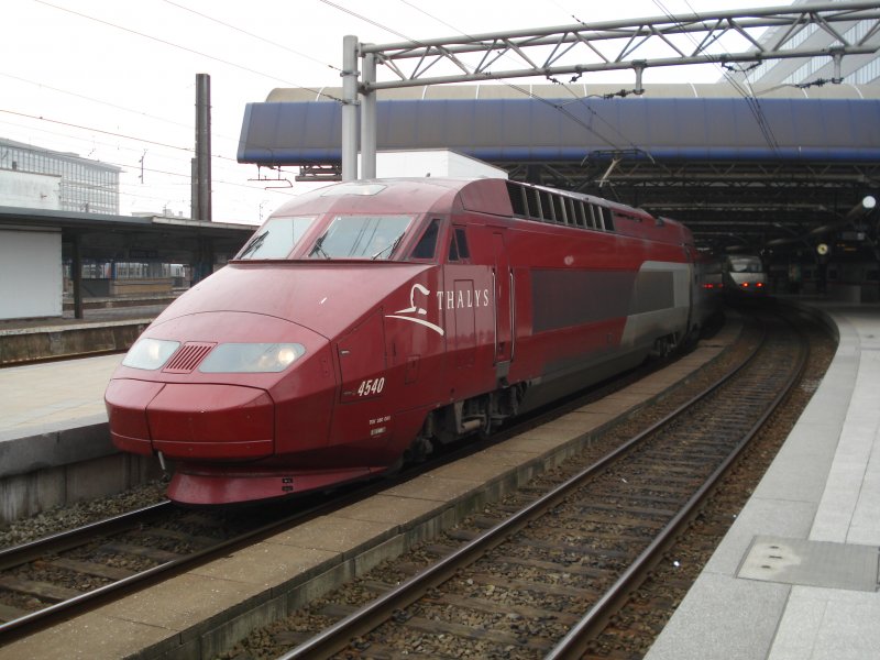 Der Thalys 4332 wird am Morgen des 27.02.09 in Bruxelles Midi nicht mehr gebraucht und verlässt den Bahnhof in Richtung Abstellplatz. (Hans) De Rond Hans und Jeanny