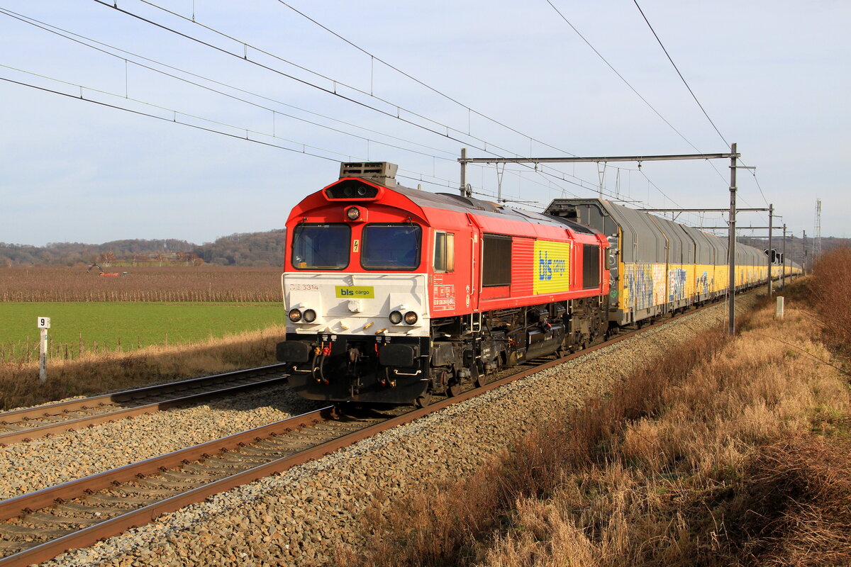 Lok DE6314 vom BLSCN zieht einem Arszug nach Zeebrugge, in Warsage
