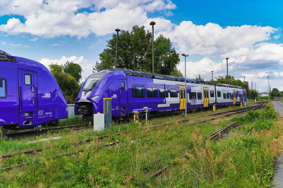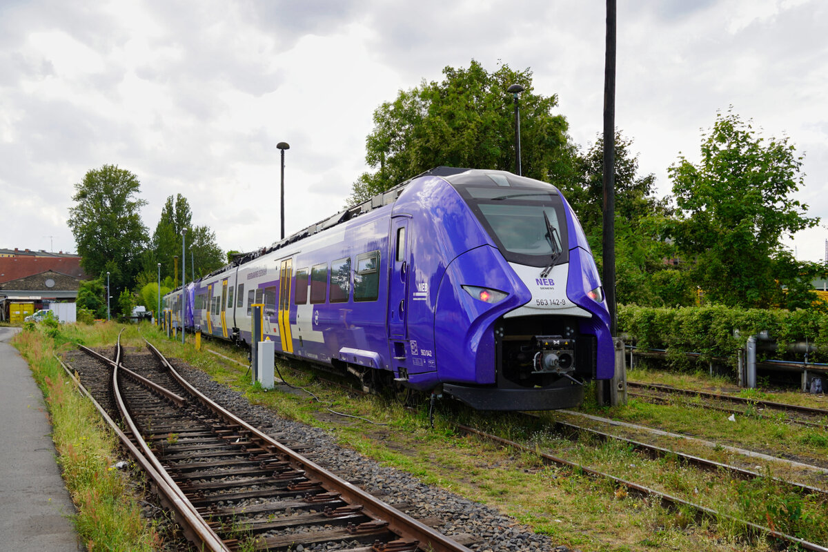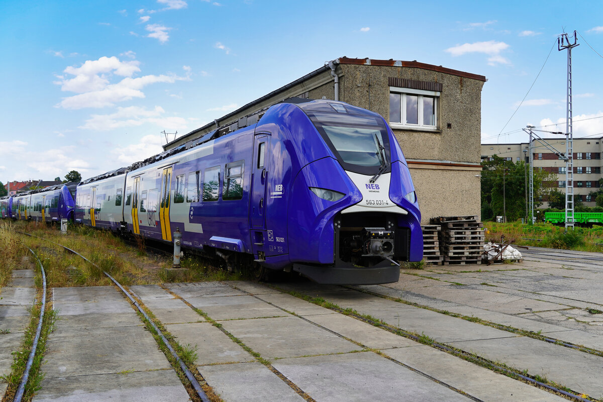 Der Mireo Plus B der Niederbarnimer Eisenbahn NEB 563 142 an der  Tankstelle  am 20.08.2025 im Bw. Berlin-Lichtenberg.