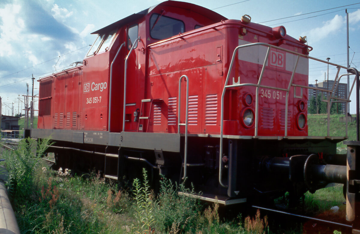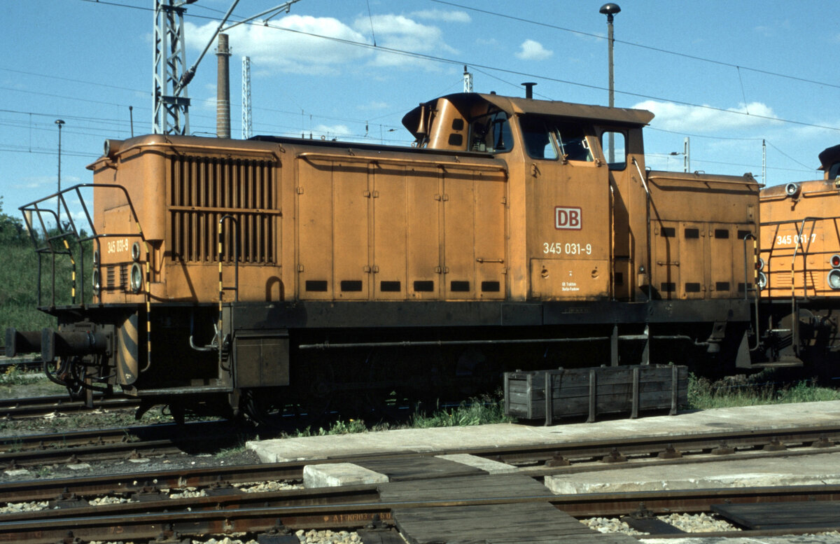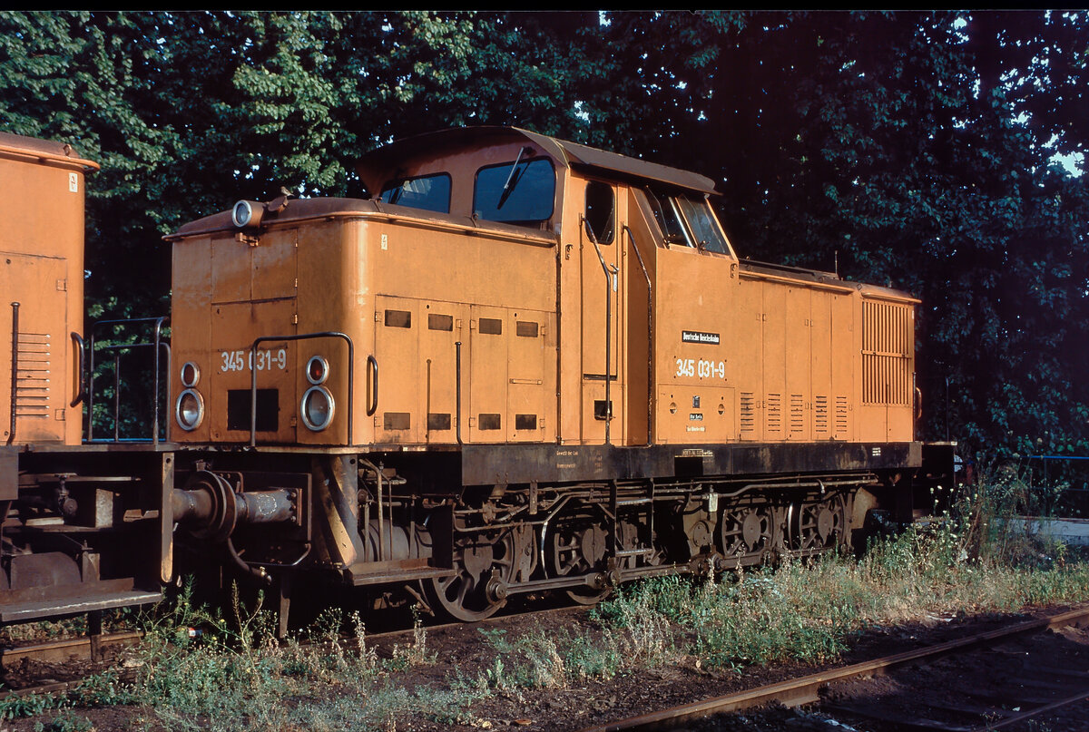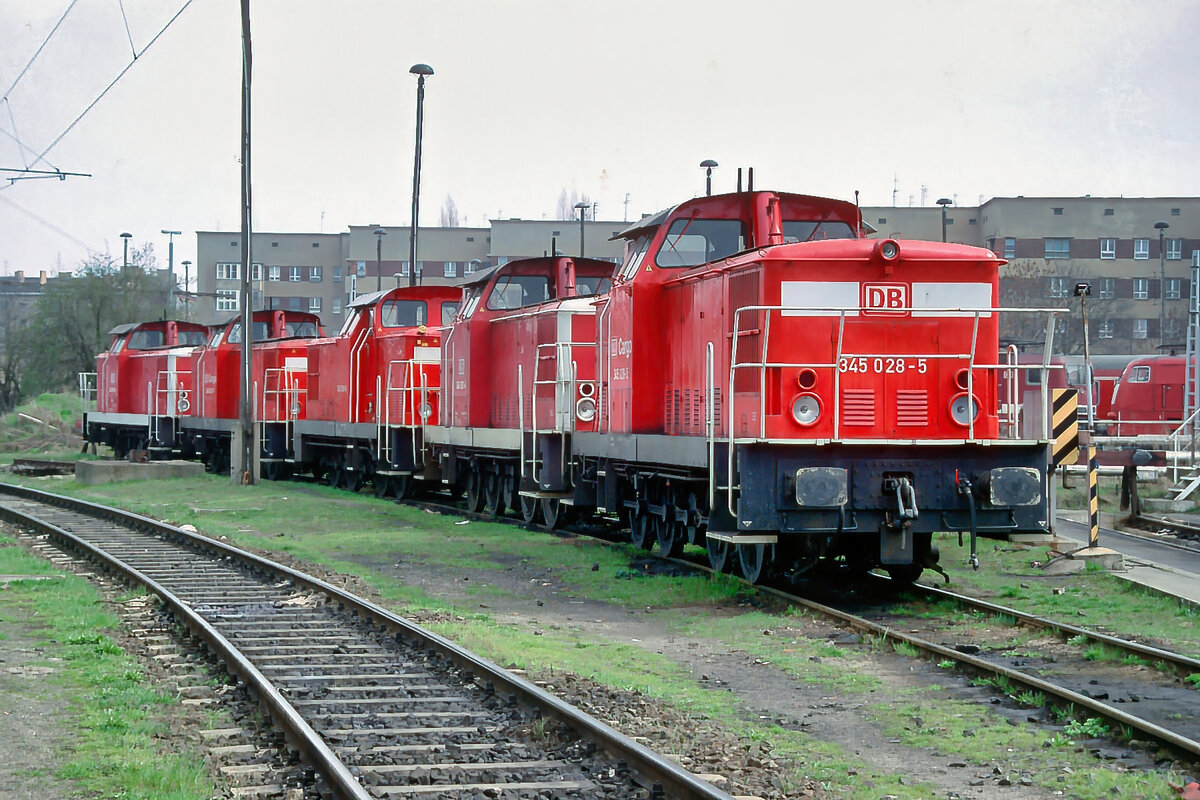 Die am 08.04.2000 im Bw. Berlin-Lichtenberg fotografierte vr 345 028 trug bei ihrer Lieferung von LEW 1976 zunächst die DR-Tfz-Nummer 105 028.