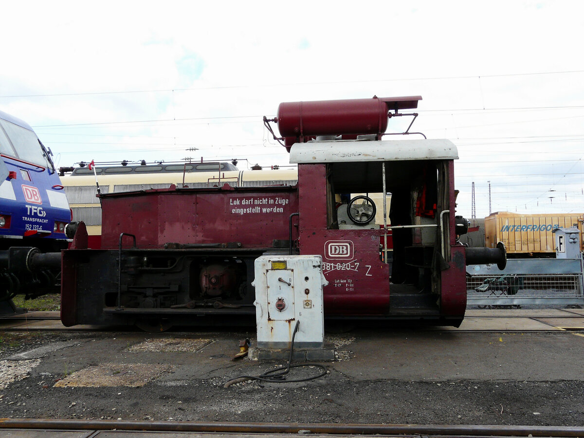 Nach der Ausmusterung wurde die Akkuspeicherlok 381 020 seit 2002 letztendlich im Bw. Mainz-Bischofsheim hinterstellt. Die Aufnahme entstand am 14.04.2008 auf einer kleinen Fahrzeugausstellung in diesem Bw. Ernst Lauer