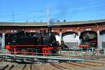 BW Pasewalk mit der absoluten Seltenheit, das 65 1008 an das Tageslicht kommt, im Hintergrund die 86 1333, am 24.07.2017