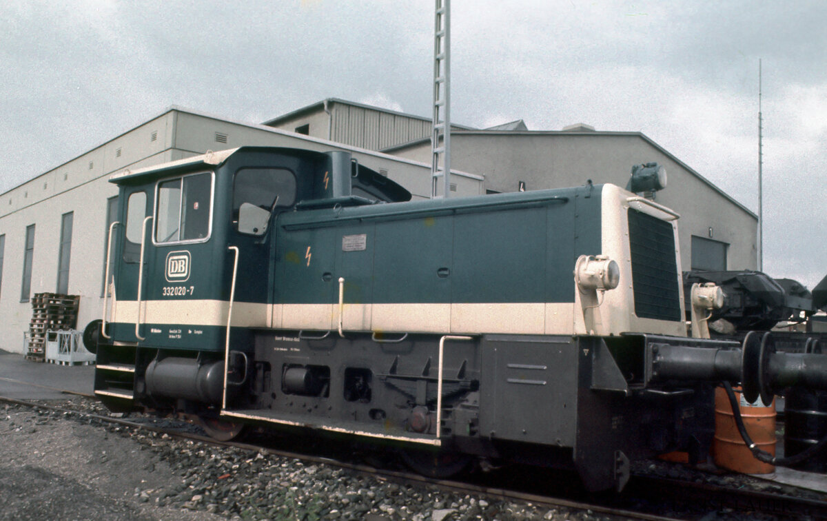 627 001 im Jahr 1981 im damaligen Bw. Kempten. Im Gegensatz zu allen bisher bei bahnbilder.de veröffentlichten Aufnahmen hatte diese Vorserienlok zum Zeitpunkt der Aufnahme noch eine Mittelpufferkupplung. Ernst Lauer