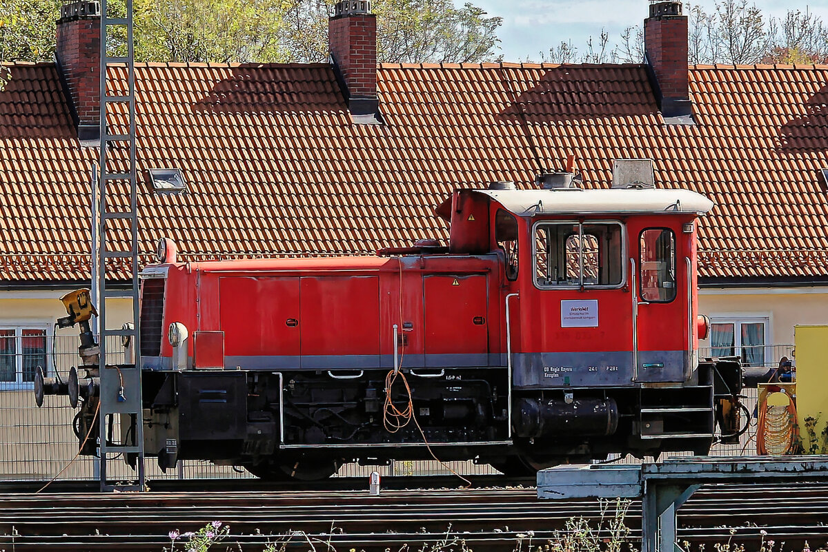 Ein Blick aus dem Zugfenster auf das DB Regio Instandhaltungswerk in Kempten. Ende November 2023 waren dort die Diesellokomotiven 218 414-1, 218 424-0 und zwei Köf´s zu sehen. Christian Bremer