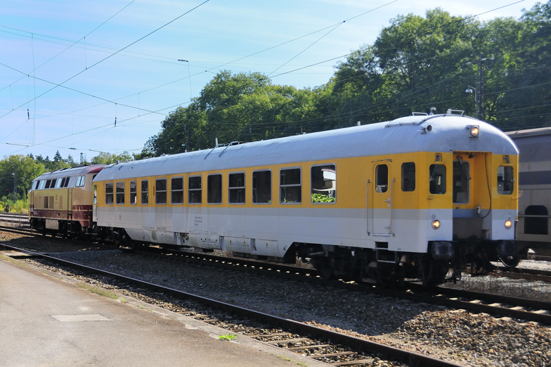 Der Steuerwagen des entgleisten Messzuges. Bei 218 474 ist die Schräglage nach der Entgleisung deutlich zu erkennen. (Karlsruhe, 08.11.2025) Leonhard Groß