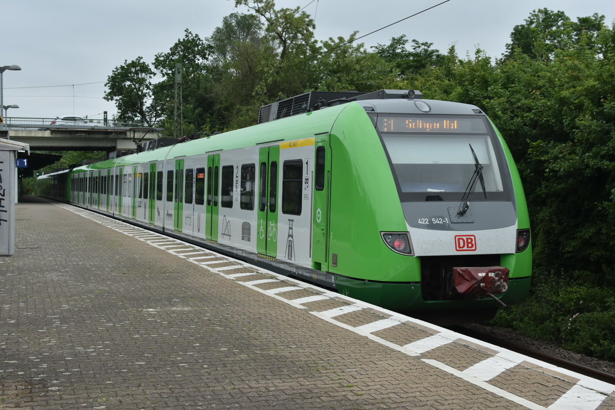 Nachschuß auf den 422 542-1 der im VRR-Design als S1 nach Solingen Hbf gerade Düsseldorf Angermund verlässt. 30.5.2019