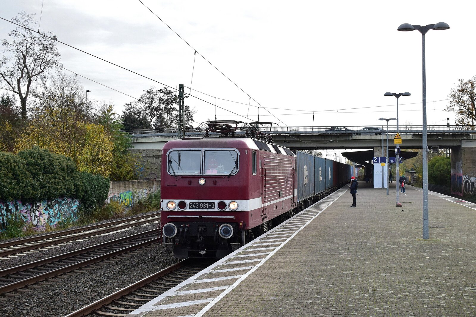 Unverhofft kommt oft. Überraschend kam 143 931 mit einem Containerzug über die S-Bahngleise von Düsseldorf nach Duisburg durch Angermund gefahren. Angermund 26.11.2022