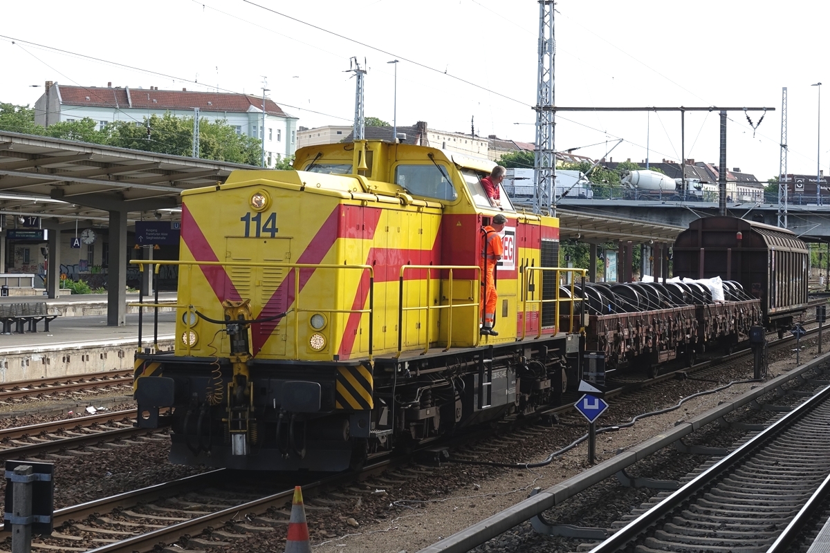 203 205-0 der D&D wartet in Berlin Lichtenberg um einige Schotterwagen in den Baustellenbereich am Bhf. Nöldnerplatz zu drücken. Dort wird aktuell ein neues Regionalbahngleis verlegt. (28.06.2017) Klaus Böttcher