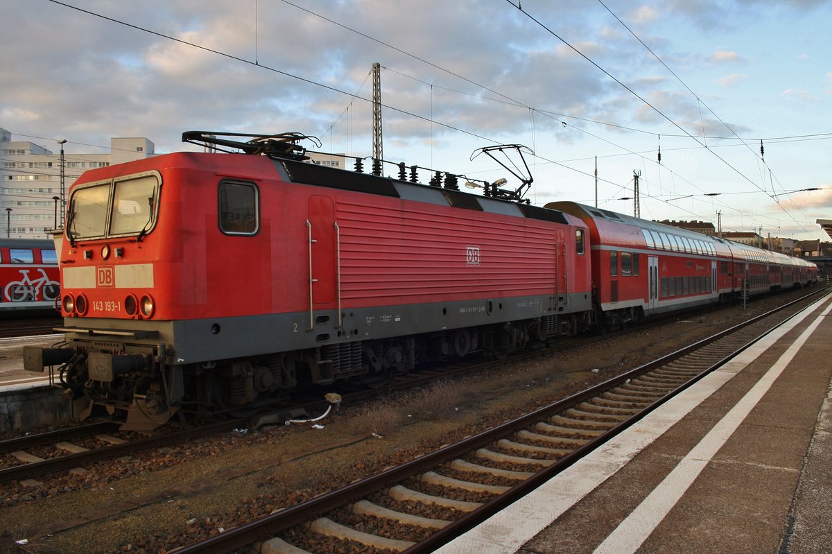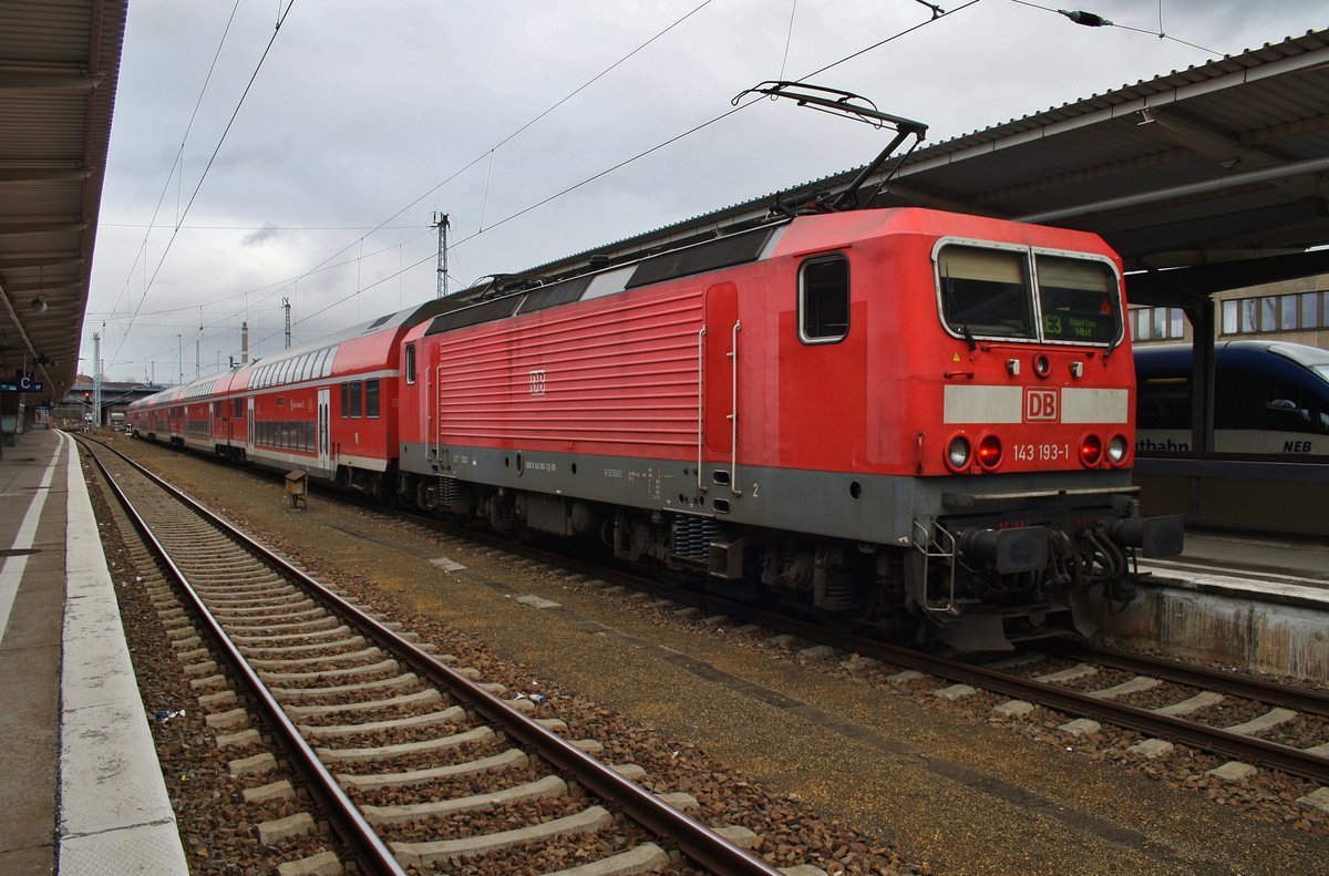 143 193-1 macht sich am 11.3.2017 mit einem RE3 (RE3313) von Stralsund Hauptbahnhof nach Berlin Hauptbahnhof (tief) in Berlin Lichtenberg auf den Weg. Alexander