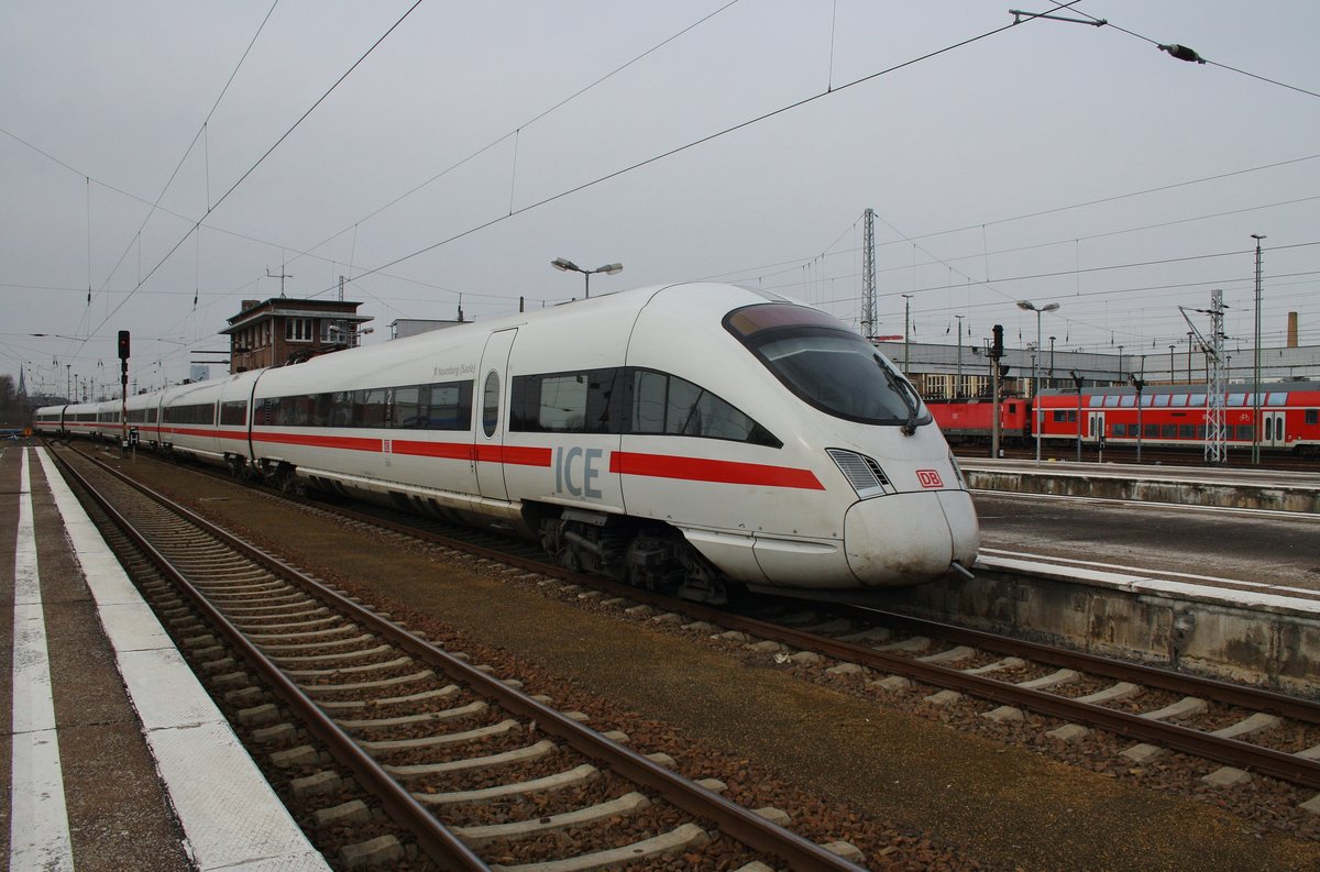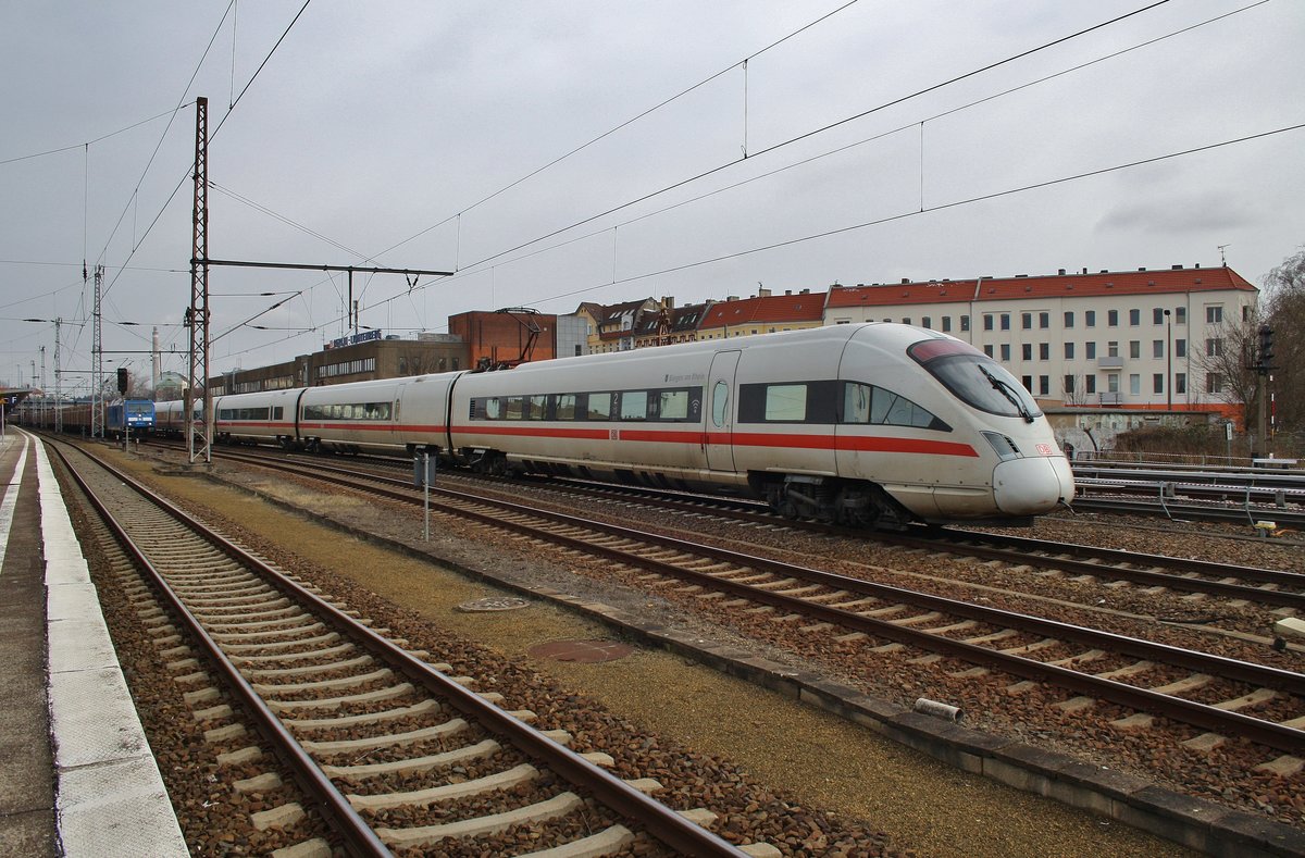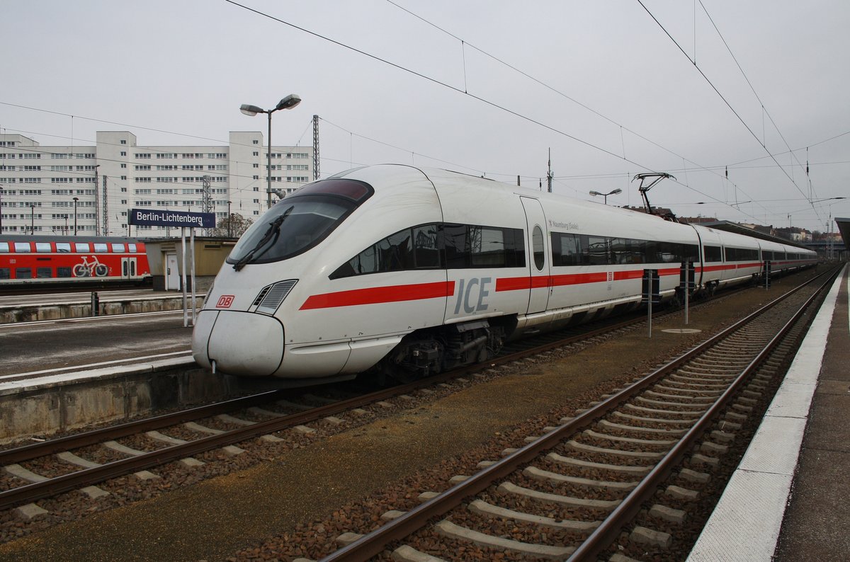 411 066-4 "Bingen am Rhein" durchfährt am 11.3.2017 als ICE1512 von München Hauptbahnhof nach Stralsund Hauptbahnhof den Bahnhof Berlin Lichtenberg in östlicher Richtung. Alexander